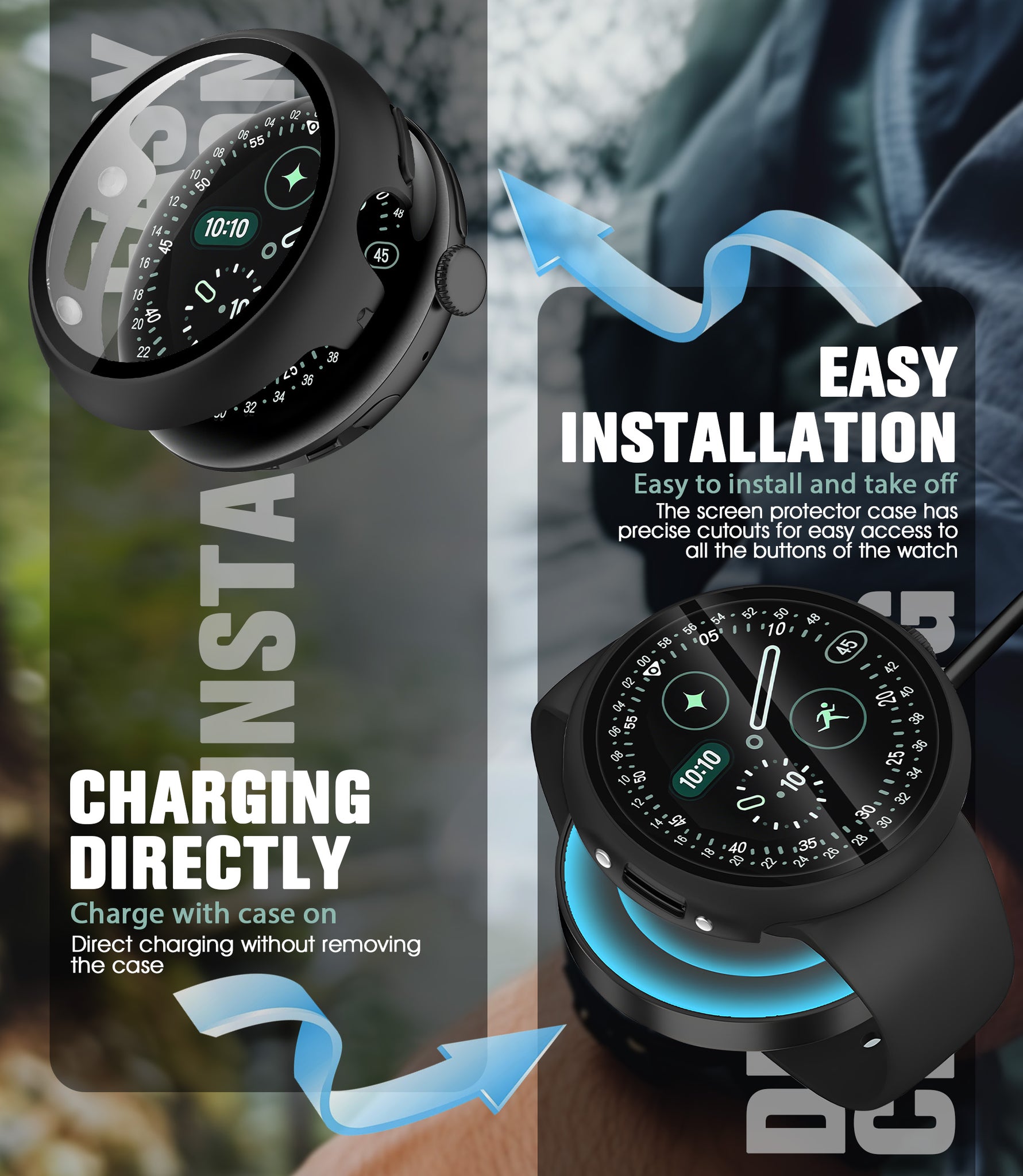 • Charge Without Removal: The upgraded built-in charging adapter ensures you’ll never have to worry about losing it again. It allows you to charge your watch effortlessly while the case remains on—no need to take off the protection every time.