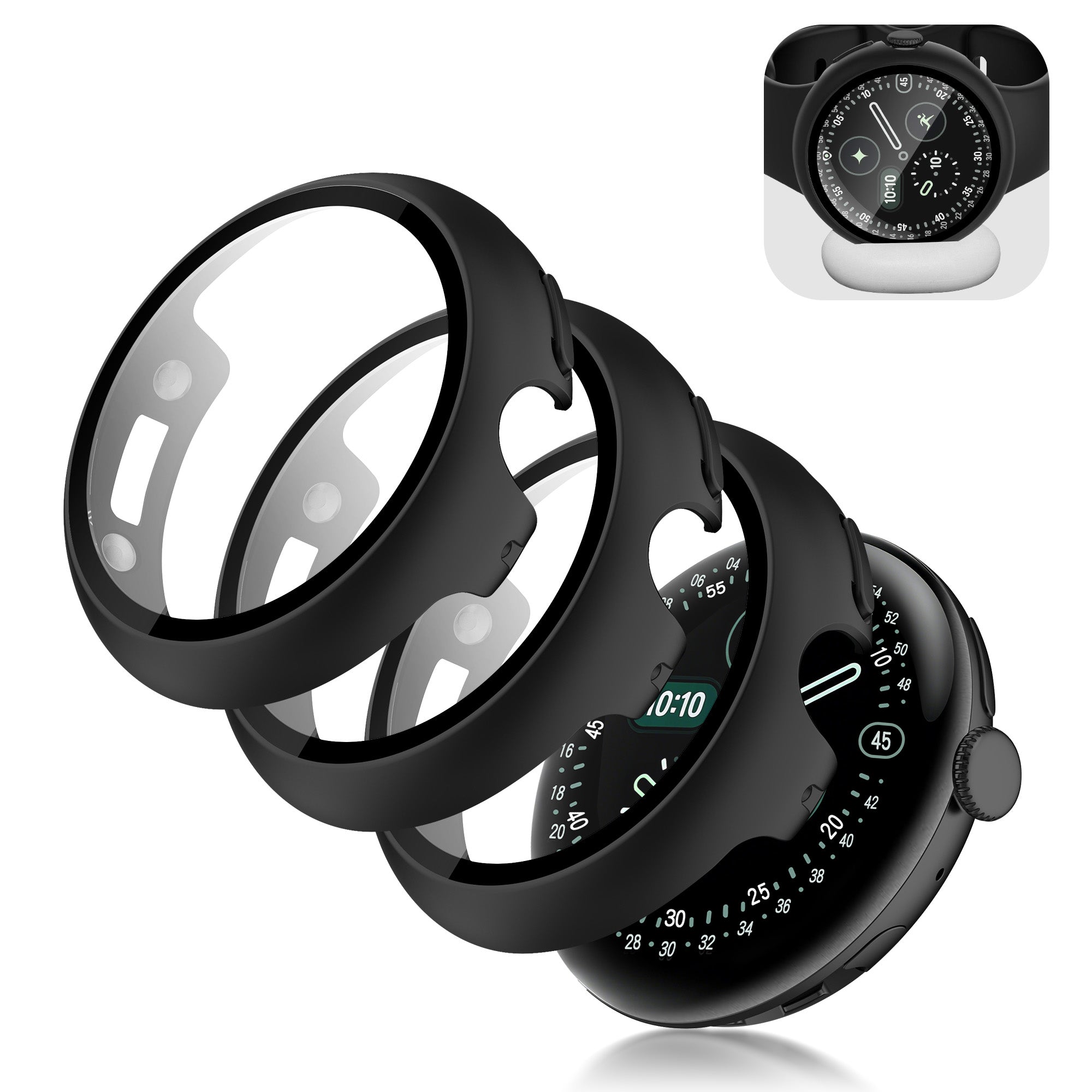 Seltureone 3 Pack for Google Pixel Watch 4 45mm Case (2025), Newly Upgraded Charge with Case On All-round Protection Hard PC Cover with Built-in Screen Protector for Google Pixel Watch 4 45mm Accessories - Black