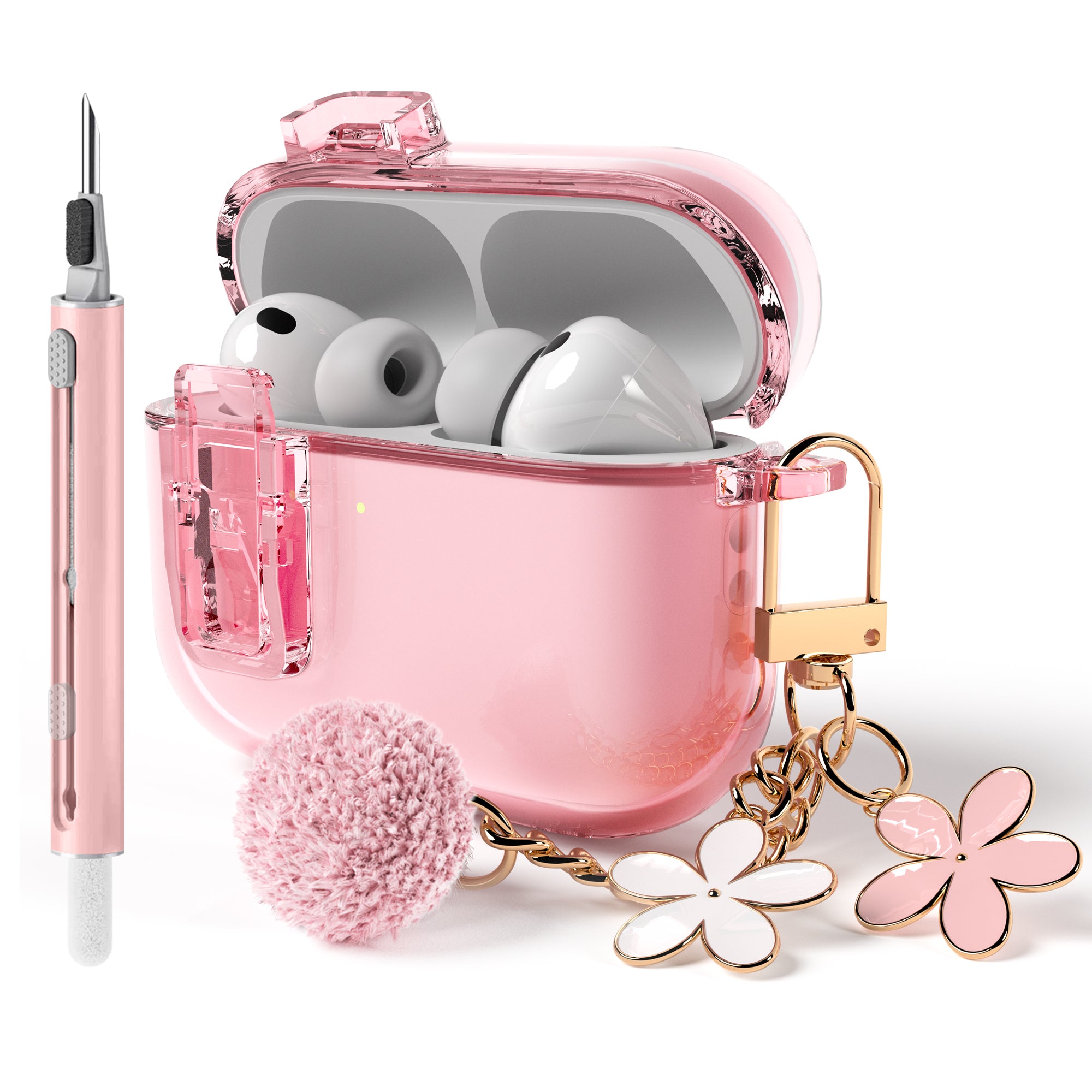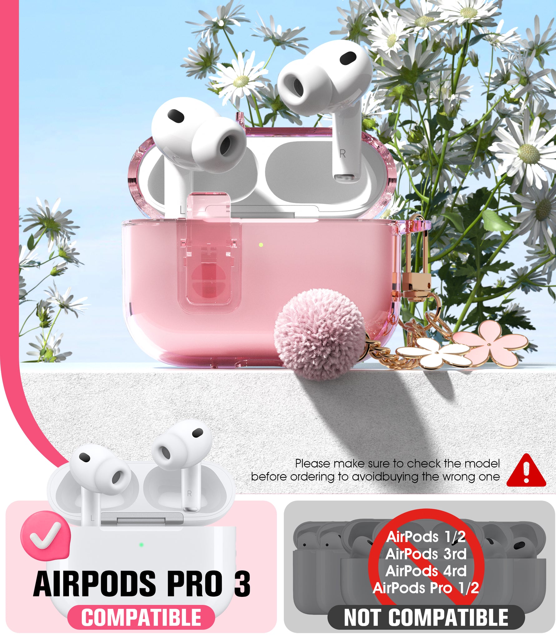 Seltureone Compatible with AirPods Pro 3 Case 2025 with Lock, Shockproof TPU Case Cover with Keychain and Cleaning Kit for Airpods Pro 3rd Generation Case Cute Girly-Pink