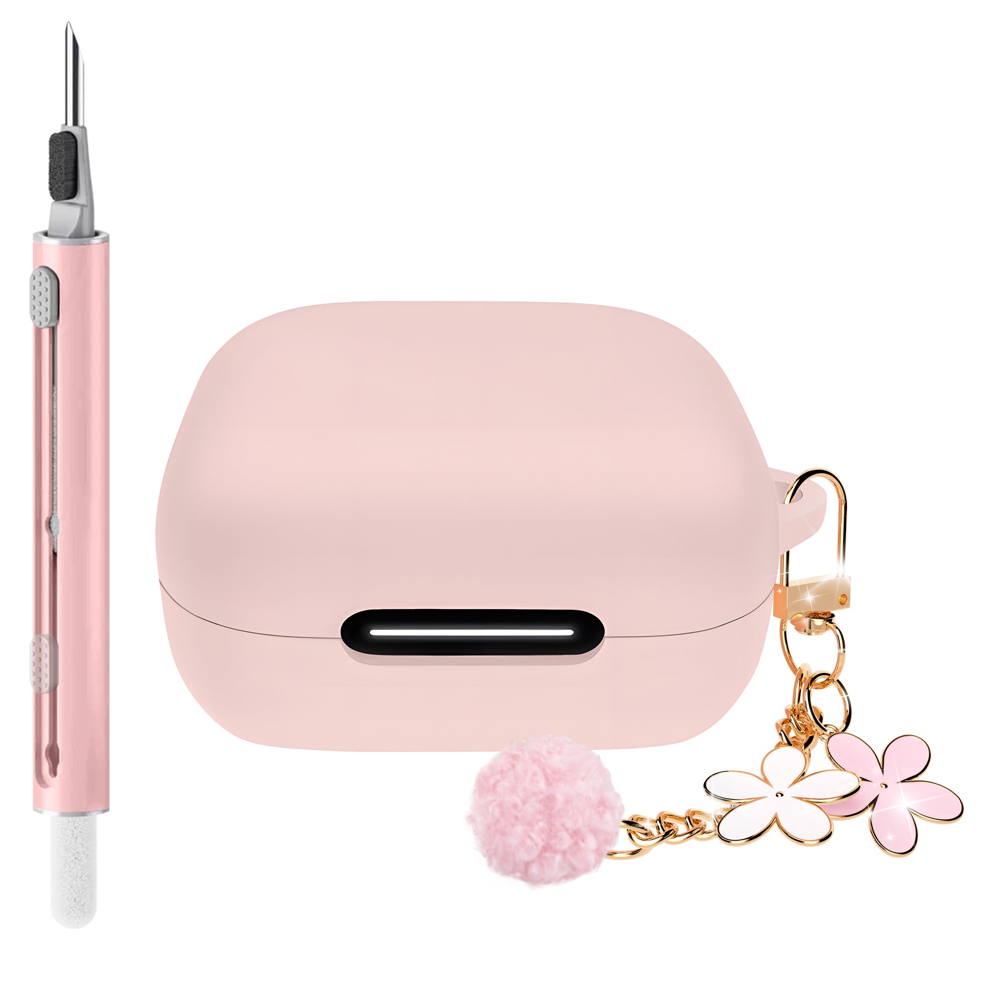 Seltureone for Anker Soundcore P30i Case Cute with Cherry Blossom Keychain and Cleaning Kit, Shockproof Soft Silicone for Anker Soundcore P30i Case Cover - Pink